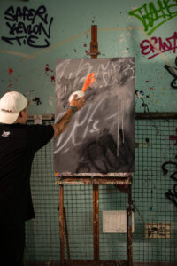 Heute liegt der Fokus auf großflächigen Wandarbeiten, die mit Sprühdose, Farbroller und Pinsel umgesetzt werden. Diese vielseitige Arbeitsweise erlaubt es dem Künstler seine Visionen auf unterschiedlichsten Oberflächen umzusetzen und Räume nachhaltig zu prägen.